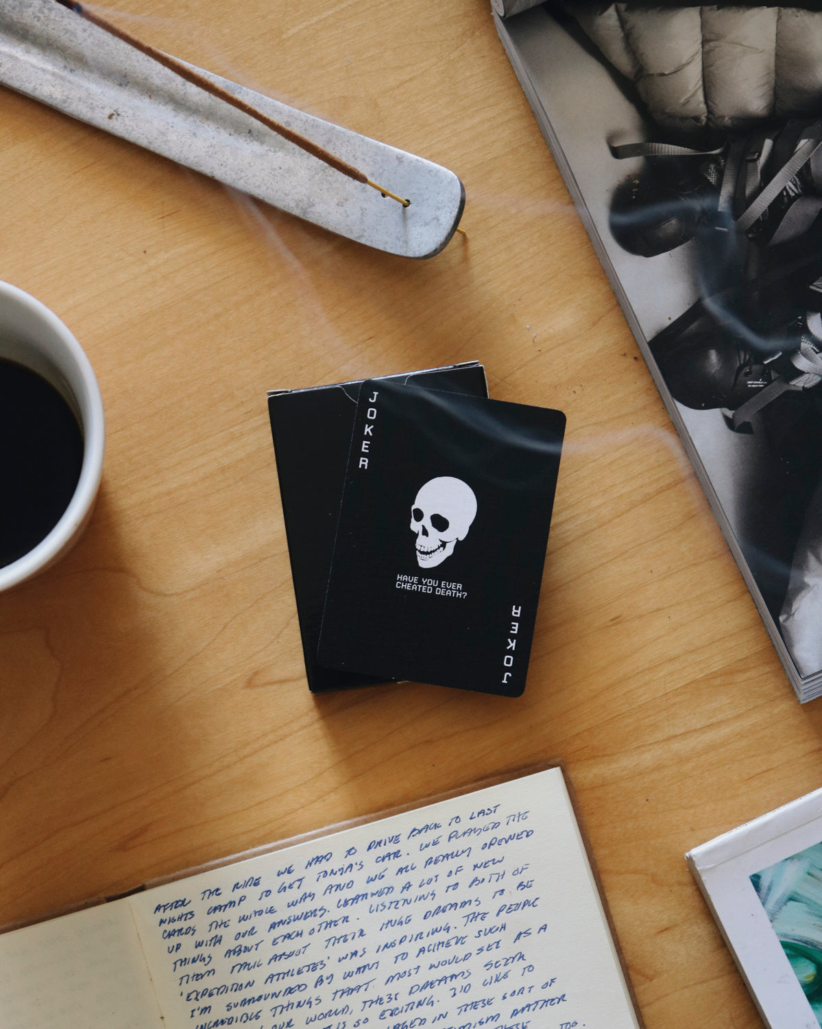 54 standard playing cards with elemental suits. 54 questions to reveal your personal narrative. Conversations on these questions open the doorway for deeper understanding about passion, fulfillment, and shadows between friends, family, lovers, and strangers.